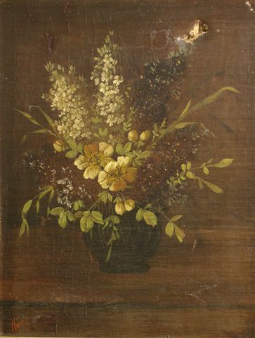 Bouquet de fleurs. Huile sur toile. Signée en bas à gauche.