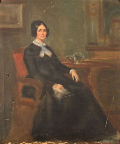 Huile sur toile montée sur panneau. Porte à l'arrière de la plaque la mention "Madame ... , Belle Mère de Claire de Bouchay". (accdts)