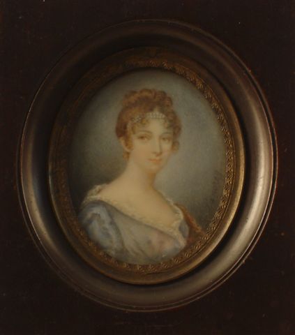Portrait de jeune femme. Miniature sur ivoire signée en bas à droite.