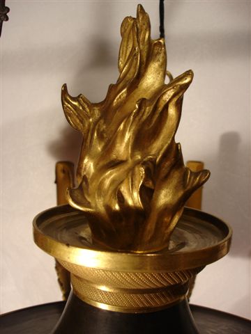 A rapprocher de "la lampe à l'antique" livrée par Duverger en 1809 à Napoléon, pour le grand cabinet-bibliothèque du petit appartement de l'Empereur, au rez-de-chaussée du palais de Fontainebleau.
