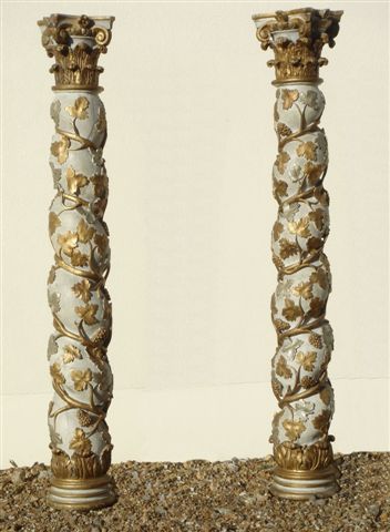 Paire de COLONNES torses en bois sculpté doré, à décor de pampres et chapiteau corinthien. XVIIIème.