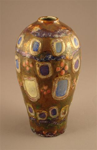 VASE de forme Mei Ping en céramique. Couverte polychrome, décor de médaillons rehaussés de dorures. Signé au revers.