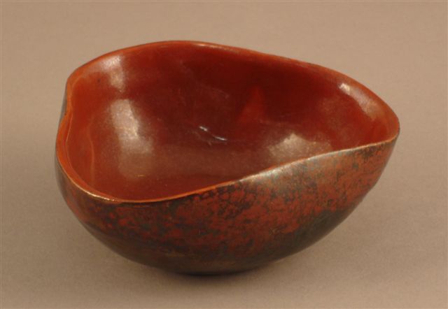 COUPE trilobée en céramique à couverte rouge.Signée au revers.Haut. 5...