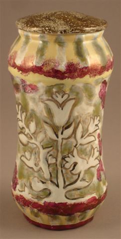 ALBARELLO couvert en céramique, à décor floral stylisé sur le fût.