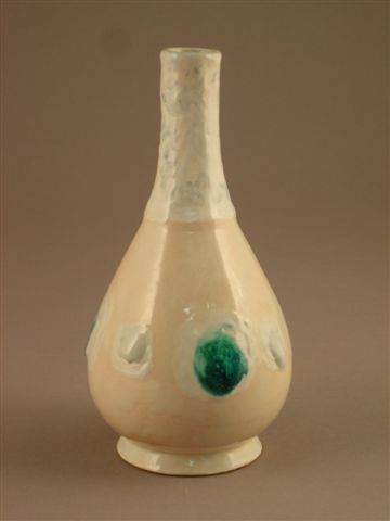 VASE à long col en céramique. Décor de médaillons verts...