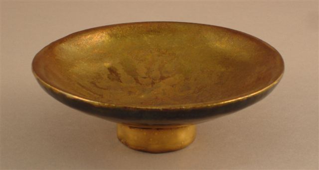 COUPE en céramique. Bassin et piètement à couverte dorée.