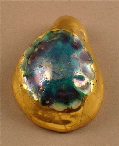 PENDENTIF en céramique. Rond, imitant une pierre turquoise sertie d'or.