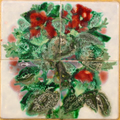 Gerbe de fleurs. MOSAÏQUE de quatre carreaux de céramique.30 x...