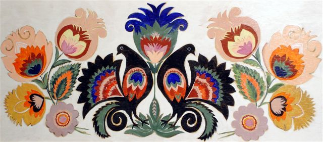 Deux colombes.Huile sur panneau.35 x 72 cm.