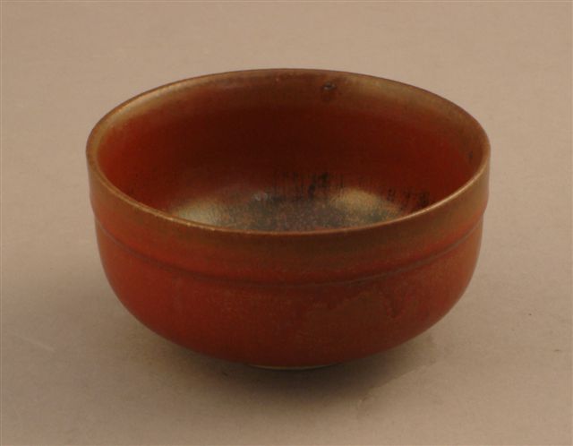 BLONET. Bol en grés émaillé brun et noir. Léger ressaut au col. Haut. 7, Diam. 13 cm.