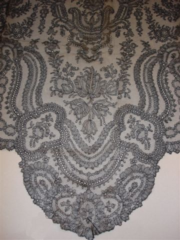 CHÂLE EN POINTE en dentelle de Chantilly noire. 135 x...