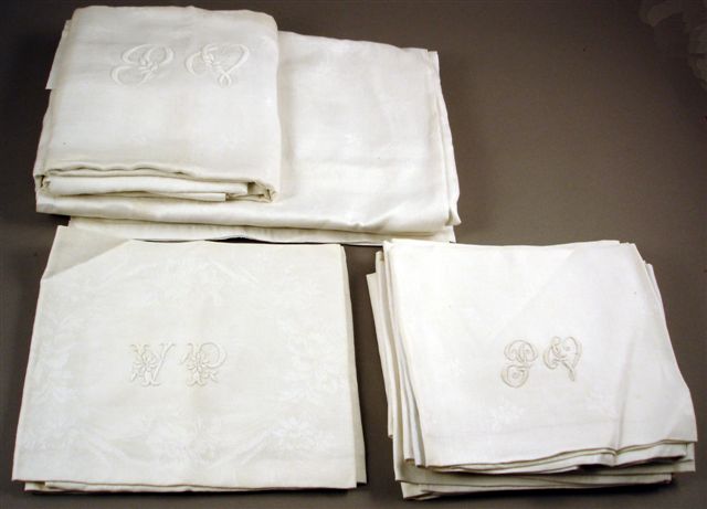 Deux NAPPES et leurs dix SERVIETTES, circa 1900, en damas...