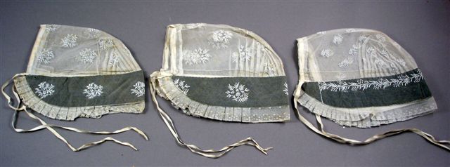 Trois BONNETS BEAUCERONS en tulle brodée de fleurs.