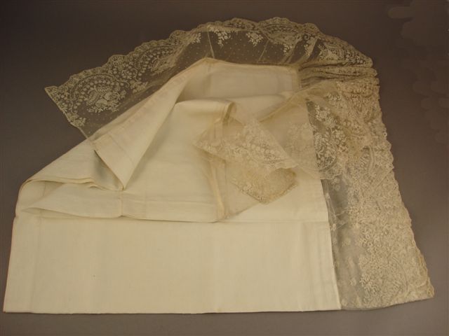 NAPPE D'AUTEL en fil bordé de dentelle.