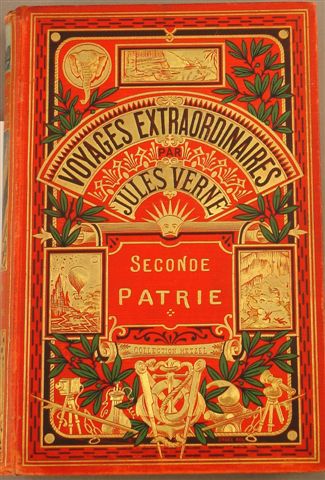 Percaline rouge. Plat sup. à l'éventail (et soleil rayonnant) et à une tête d'éléphant. (Engel). ill. de G. ROUX. Catalogue BH.