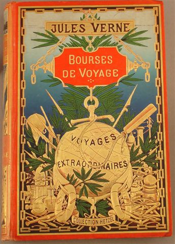 Percaline rouge. Plat sup. sur fond bleu, à la mappemonde et aux instruments. (Engel). ill. de BENETT.