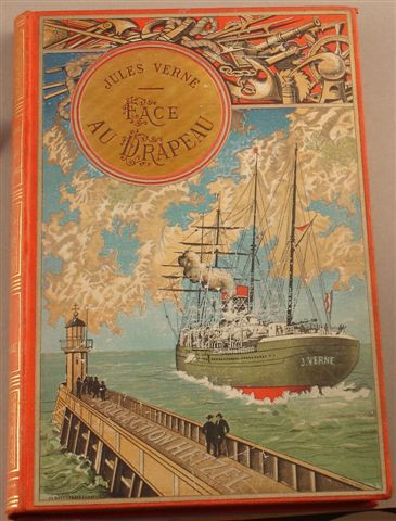 JULES VERNE. Face au drapeau. Hetzel, sd. Percaline rouge. ...