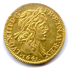 Demi-louis d'or à la mèche longue, 1641. 3,39g