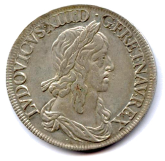 Buste lauré et drapé du roi à droite. Couronne delaurier avec baies. Point sous le buste. R/. Écu de France couronné. Point initial. Millésime en fin de légende. Lettre d'atelier à la pointe de l'écu.