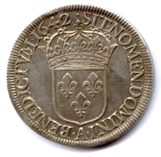 Écu d'argent de 60 sols du premier poinçon de Jean Warin, 1642. 27,23g