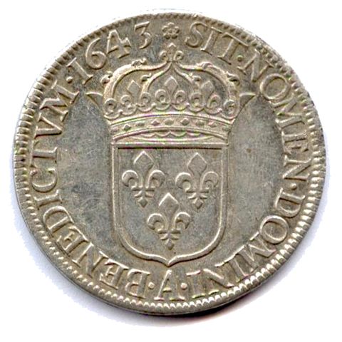 Écu d'argent de 60 sols du deuxième poinçon de Jean Warin, 1643. 27,36g