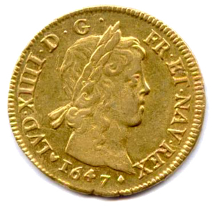 Double louis d'or à la mèche longue, 1647. 13,27g