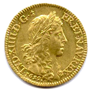 Louis d'or au buste juvénile lauré, 1659. 6,73g