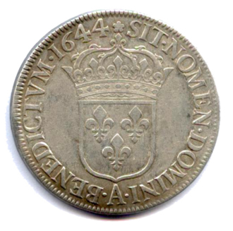 Écu d'argent à la mèche courte, 1644. 27,07g