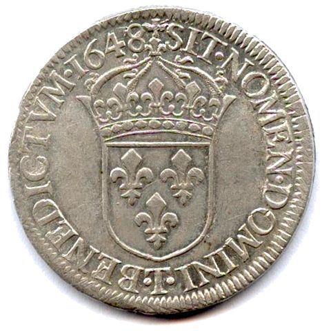 Écu d'argent à la mèche longue, 1648. 27,19g