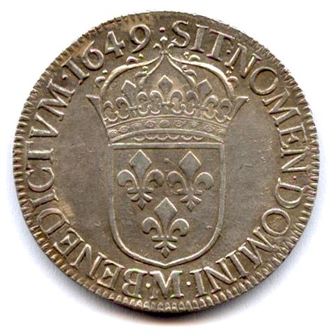 Écu d'argent à la mèche longue, 1649. 27,15g