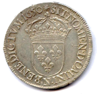 Écu d'argent à la mèche longue, 1650. 27,11g