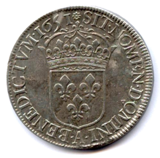 Écu d'argent à la mèche longue, 1651. 27,17g