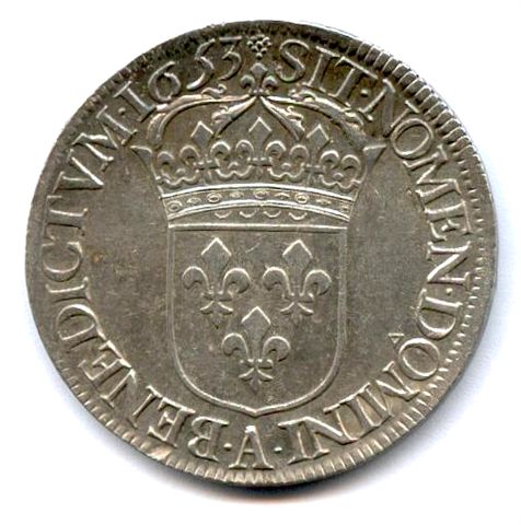 Écu d'argent à la mèche longue, 1653. 27,23g