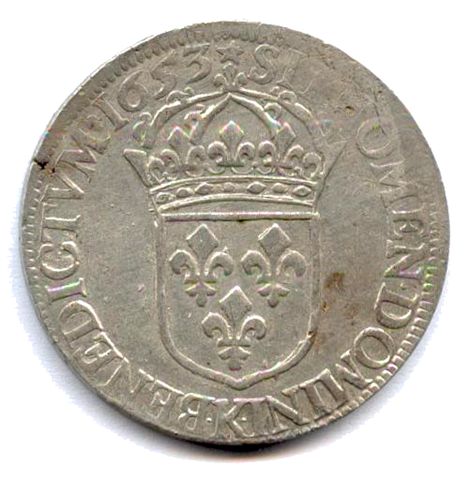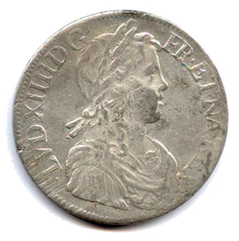 Écu d'argent à la mèche longue, 1653. 27,33g