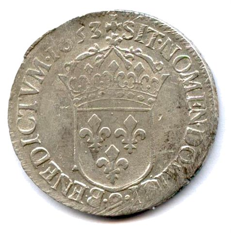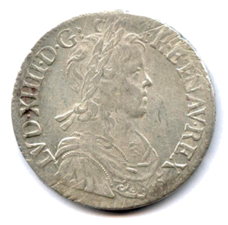 Écu d'argent à la mèche longue, 1653. 27,28g