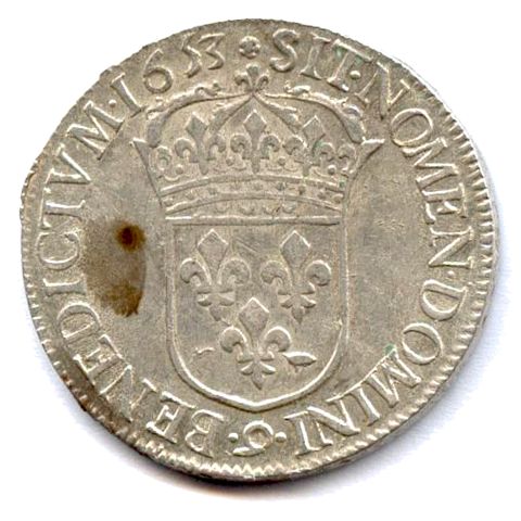 Écu d'argent à la mèche longue, 1653. 27,19g