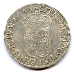 Écu d'argent de Navarre à la mèche longue, 1653. 27,17g