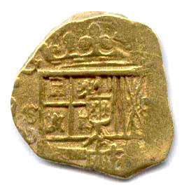 Armoiries couronnées aux armes de Aragon, Castille et Leon, Autriche, Bourgogne ancien, Brabant, Bourgogne nouveau, Naples et Sicile, surchargées d'un petit écu aux armes du Portugal et d'un petit écu aus armes de Flandres et Tyrol.Armoiries couronnées. A gauche, S et lettre P. A droite, valeur II. R/. Croix potencée dans un quadrilobe feuillu cantonné de quatre annelets.