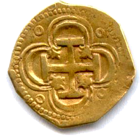 Armoiries couronnées. A gauche, S et lettre B. A droite, annelet (peut-être le 0 du millésime 1590). R/. Croix potencée dans un quadrilobe feuillu cantonné de quatre annelets.