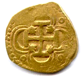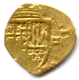 Armoiries couronnées du type de Séville. R/. Croix potencée dans un quadrilobe feuillu cantonné de quatre annelets.