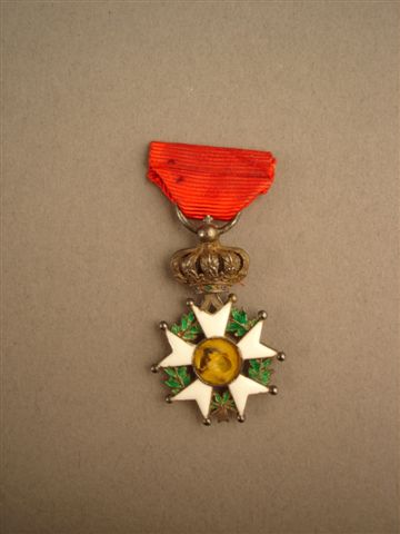 b) Etoile de Chevalier en réduction. Argent, émail, ruban (manque l'avers). A.B.