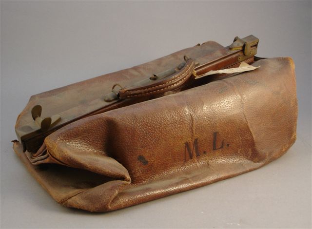 SAC DE VOYAGE en cuir monogrammé M.L. Début XXème.
