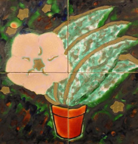 Pot fleuri. MOSAÏQUE de quatre carreaux de céramique.