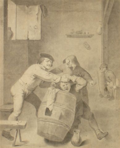 École FLAMANDE du XIXème siècle, d'après Davis TENIERS. La rixe....