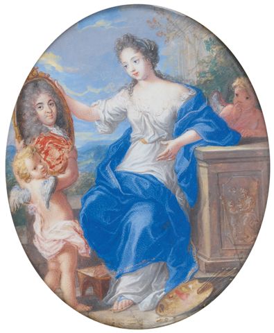 Mademoiselle de la Vallière, en Muse de l'Histoire, montrant le portrait de Louis XIV.
