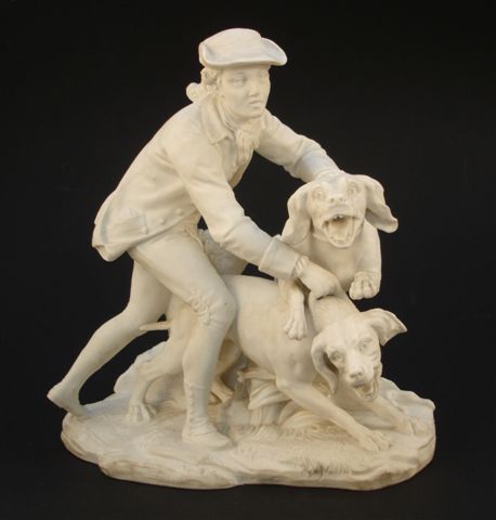 - ensemble d'un sonneur retenant deux chiens (long. 33, haut. 31 cm.)
