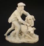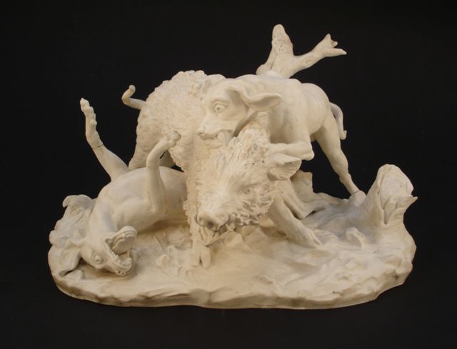 - groupe de deux chiens attaquant un sanglier (long. 40, haut. 25 cm.)