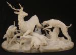 Exceptionnel ensemble de huit pièces formant surtout de table cynégétique, en biscuit de SÈVRES :