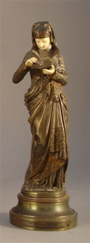 Chryséléphantine, patinée, signée. Fonte ancienne.