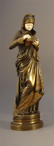 Chryséléphantine, patinée, signée. Fonte ancienne.